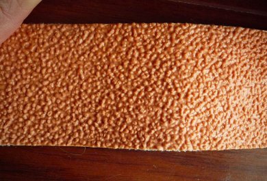 糙面橡皮用來增大摩擦系數,通常用于防止行業不同工序中的織物索引,如使用在個正噴氣、噴水、劍桿、片梭等無梭織機及驗布機、印染設備的導布輥上。糙面橡皮標準制品為長度100m,寬度100mm,80mm,50mm,40mm帶卷。其他寬度亦可按要求供貨。應用時,螺旋狀包繞在輥筒上,用粘合劑粘牢,用卡子或螺絲固定頭部.