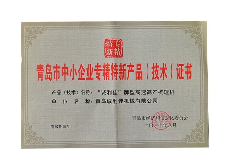 青島市中小企業(yè)專精特新產(chǎn)品(技術(shù))證書